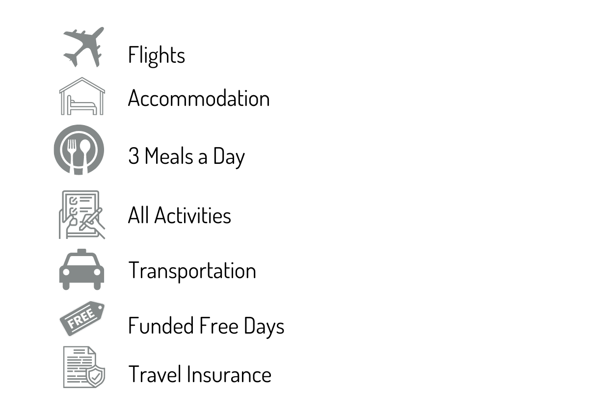 On this trip you will get free days to do as you please! Relax at the place we stay or go on adventures with your new friends (or alone if you prefer). You will be given cash each day to do what you please for the day. Dinner will be provided back at where we will be staying.